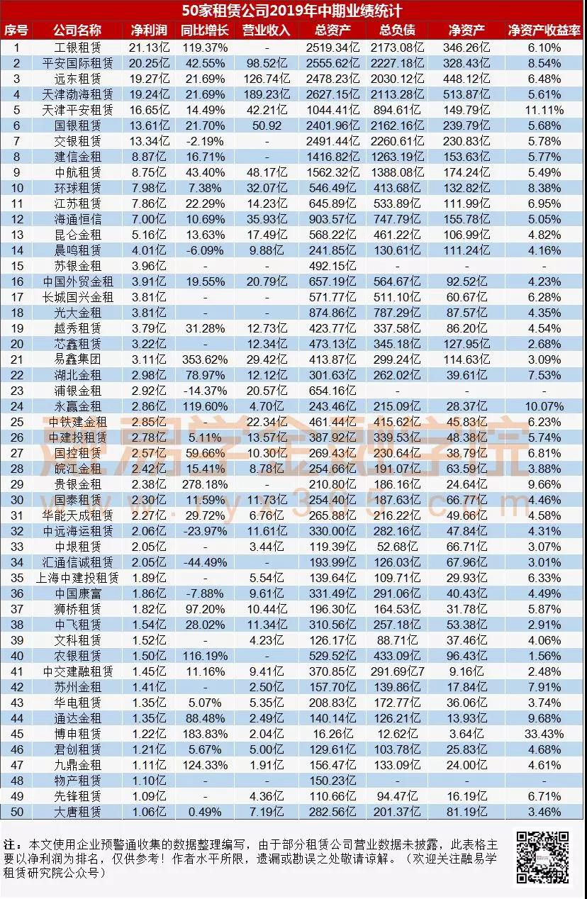 2019上半年太“南”了?一文看盡工銀、國銀、平安、遠東等50家租賃公司年中報!